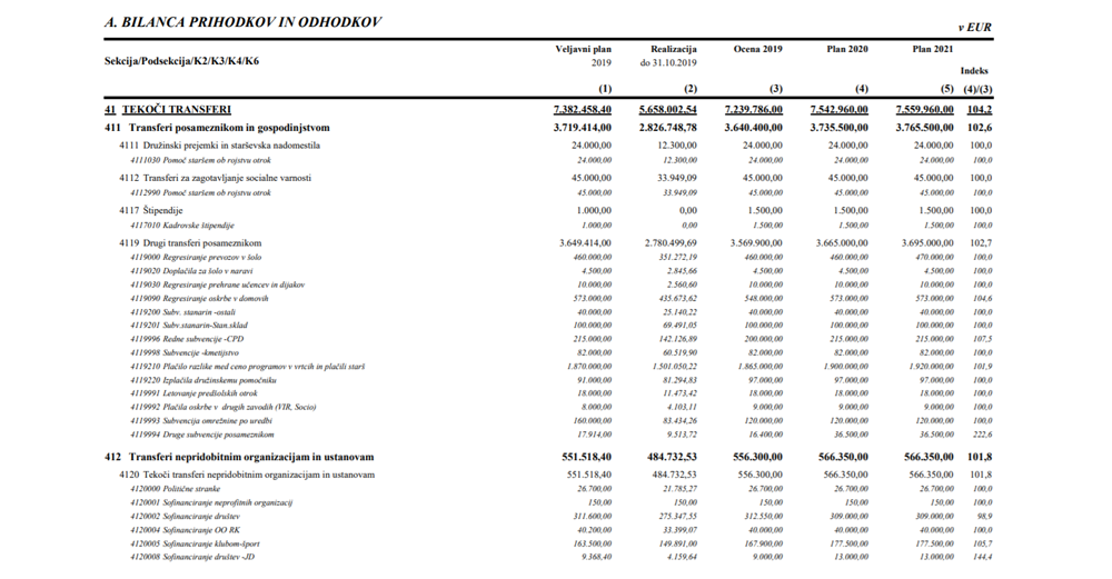 Ker pa so proračuni več sto strani dolgi, tehnično zapleteni dokumenti, je pomembno tudi, v kakšni obliki so objavljeni. Tako na primer 75 % občin omogoča iskanje po proračunu, ostale pa objavijo zgolj skeniran dokument PDF, v katerem je podatke precej težje odkriti.